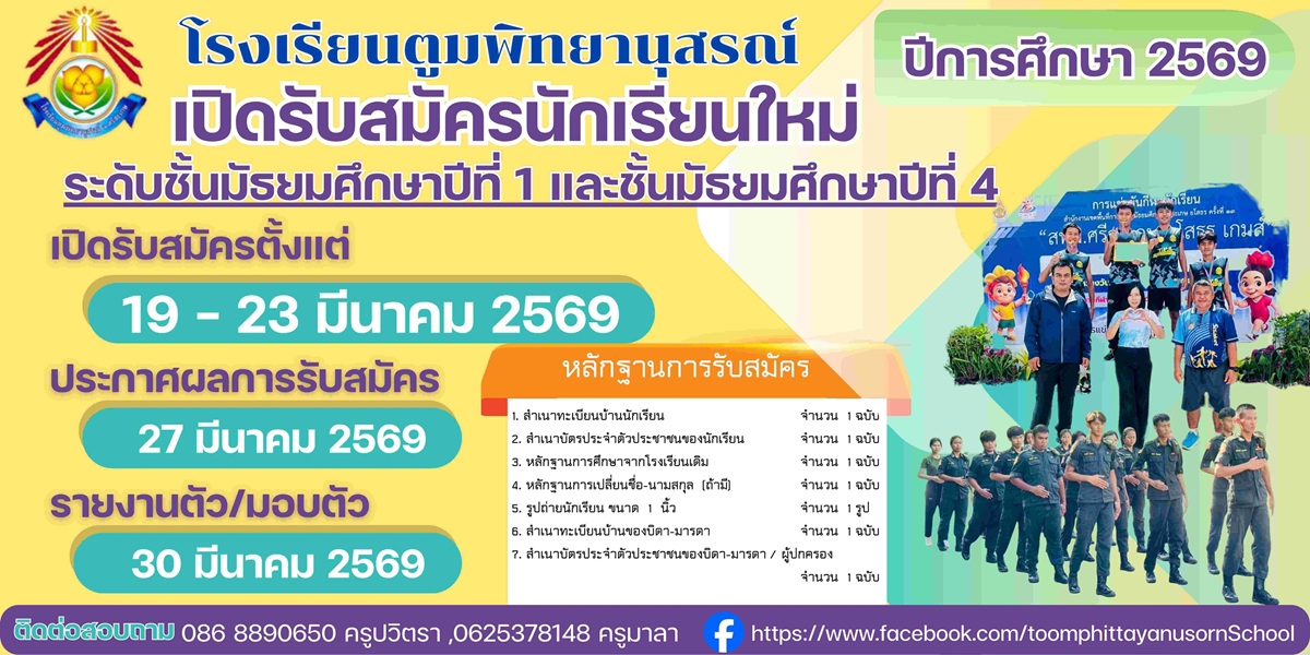 ยินดีต้อนรับเข้าสู่เว็บไซต์ โรงเรียนตูมพิทยานุสรณ์ค่ะ...
